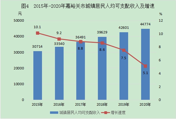 人民生活:全年城镇居民人均可支配收入44774元,比上年增长5.1%;城镇居民人均生活消费支出30863元,增长2.3%;城镇居民食品烟酒消费支出占消费性支出的比重为32%。