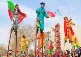 踩高跷,是民间盛行的一种群众性技艺表演,也是古代百戏的一种。