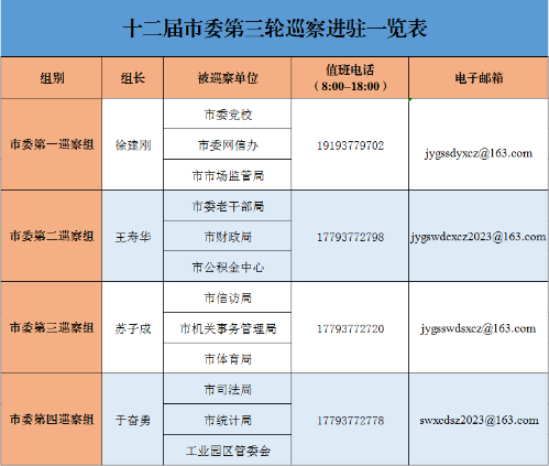 联系方式公布!十二届市委第三轮巡察完成进驻