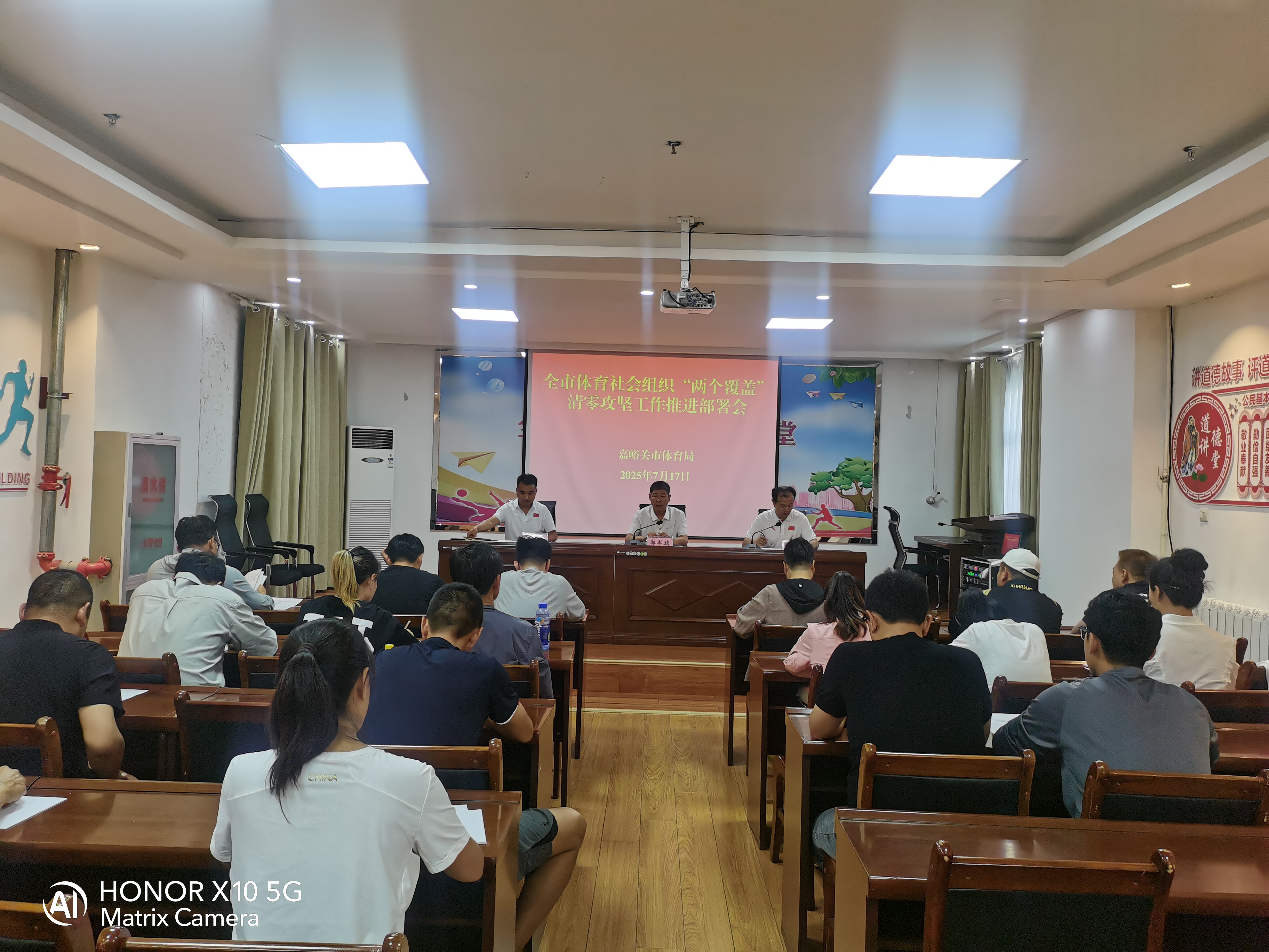 7月17日下午,全市性体育社会组织“两个覆盖”清零攻坚工作推进部署会在市体育局全民健身大讲堂召开。市体育局党组成员、副局长郭军旗同志出席会议,市体育局业务科科长、市体育总会秘书长胡义格同志主持会议,全市性体育社会团体会长、秘书长,全市体育类民办非企业负责人参加会议。
