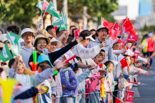 清晨7时整,随着发令枪声划破天际,参赛选手们昂首阔步冲出起跑线。瞬间,一条如丝绸般的人流彩带在赛道上交织成一道亮丽的风景线。选手们以速度与激情感受着青春嘉峪关的开放与包容,见证着文化嘉峪关的神韵与超凡。赛道沿途,绿意葱茏的街景、壮美奔腾的讨赖河、巍峨雄阔的万里长城,与激情马拉松的健康与时尚完美融合,尽显长城文化、丝路文化的神采与气韵。嘉峪关古老而年轻、沧桑而靓丽的气质和形象,再次被世人见证。