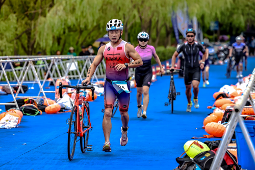 游泳赛段结束,便是骑行赛段的较量。运动员们纷纷起水,争分夺秒地踏上了骑行赛段的较量。风雨洗礼,距离较长的骑行赛段对运动员们来说不仅是对他们骑行技巧的考验,更是对他们坚定信念的磨练。