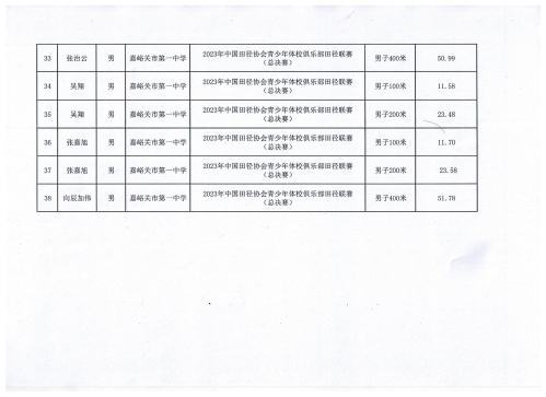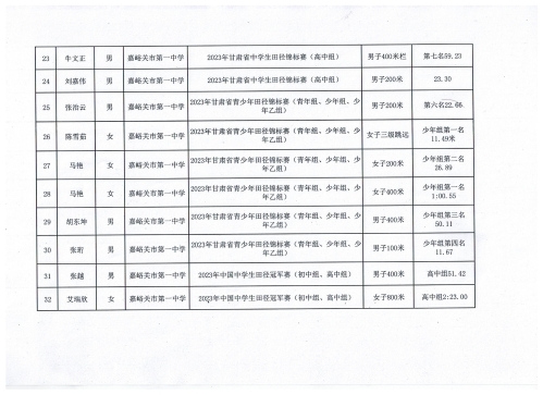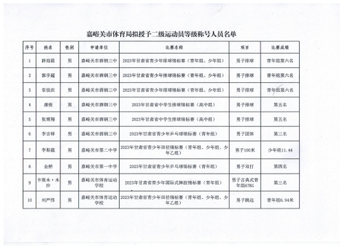 嘉峪关市体育局关于拟授予薛迎晨等32人次二级运动员等级称号的公示