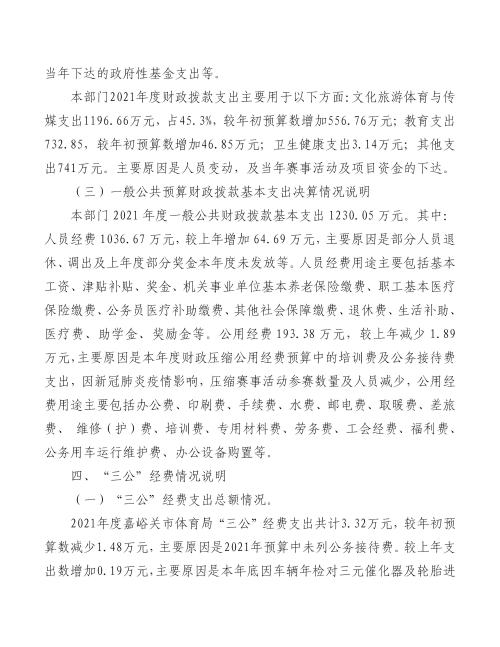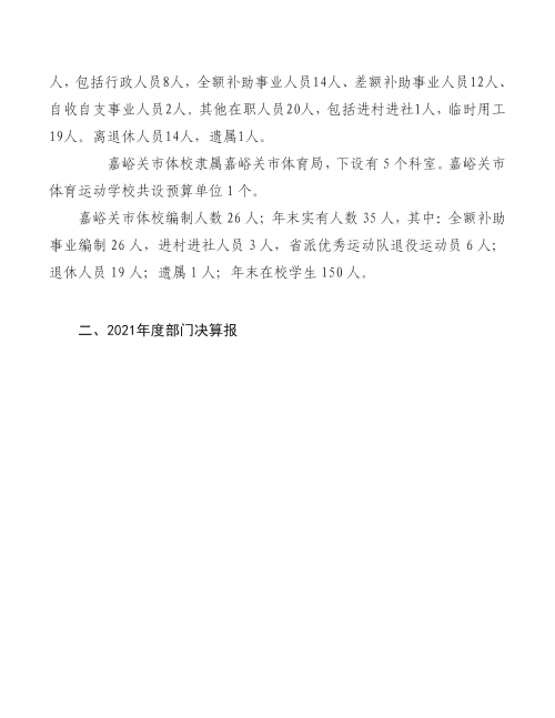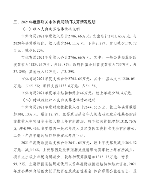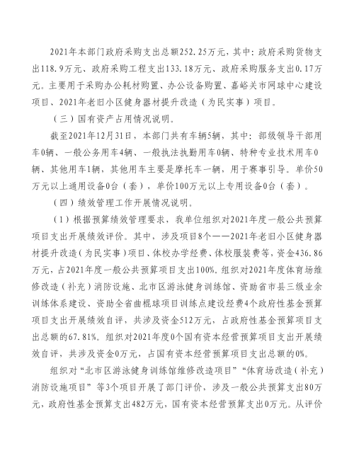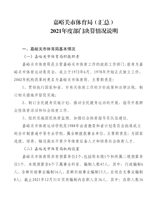 附件:嘉峪关市体育局2021年部门整体支出预算绩效目标自评报告.pdf