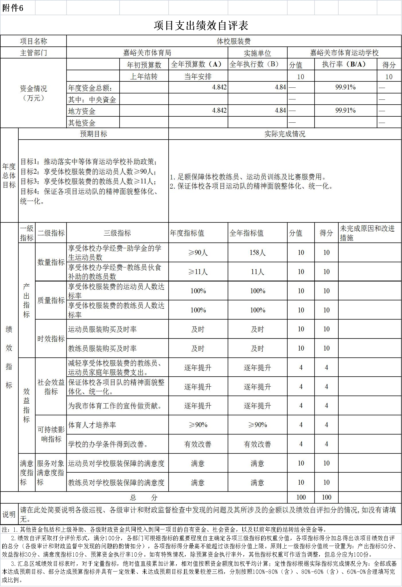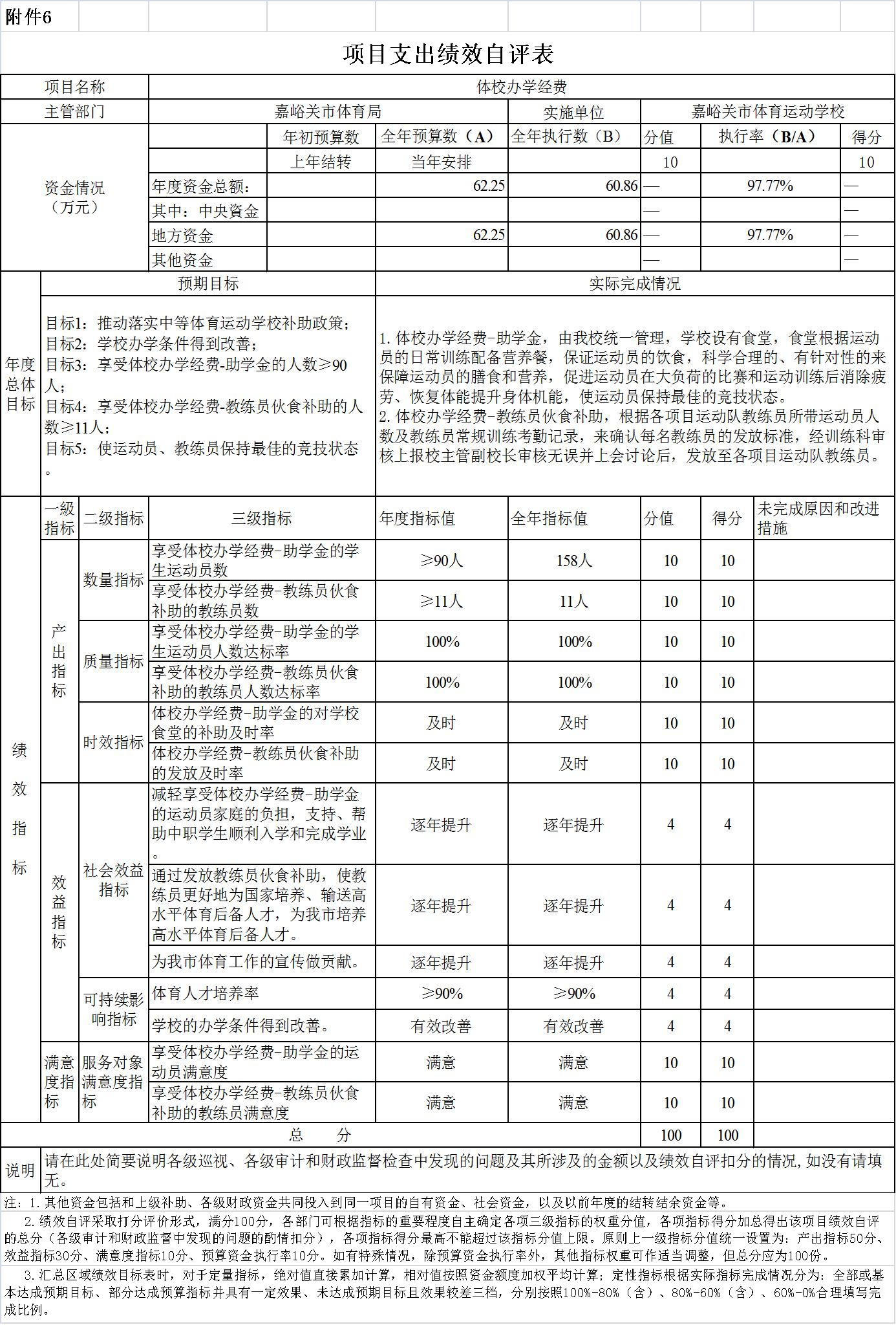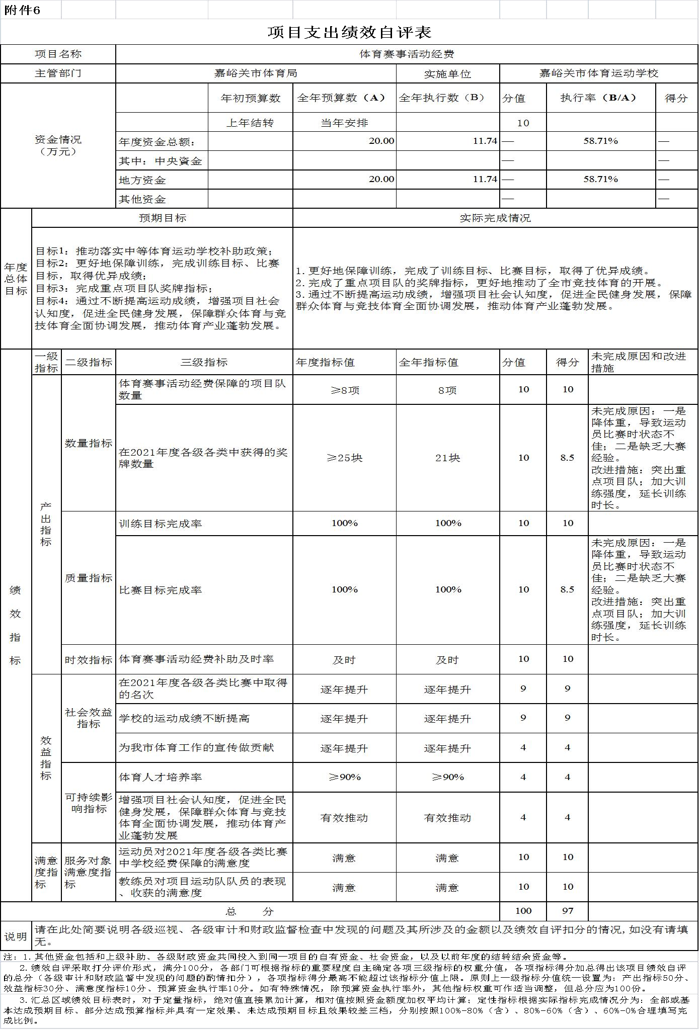 项目绩效目标完成情况:一是按时足额保障学校参赛运动员、教练员的