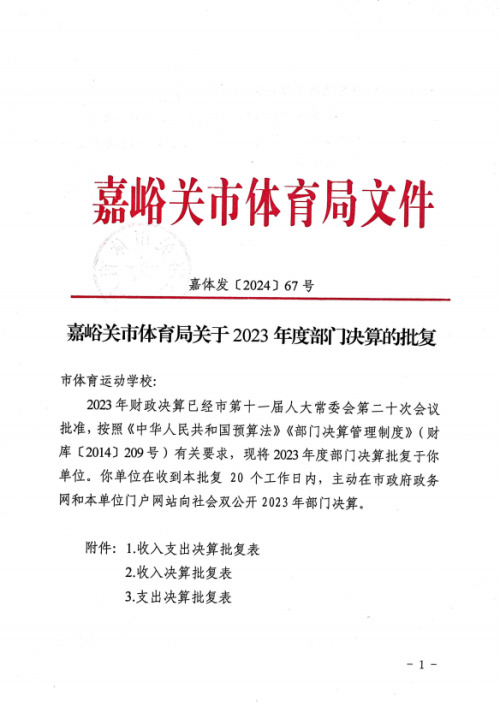 嘉峪关市体育局关于2023年度部门决算的批复