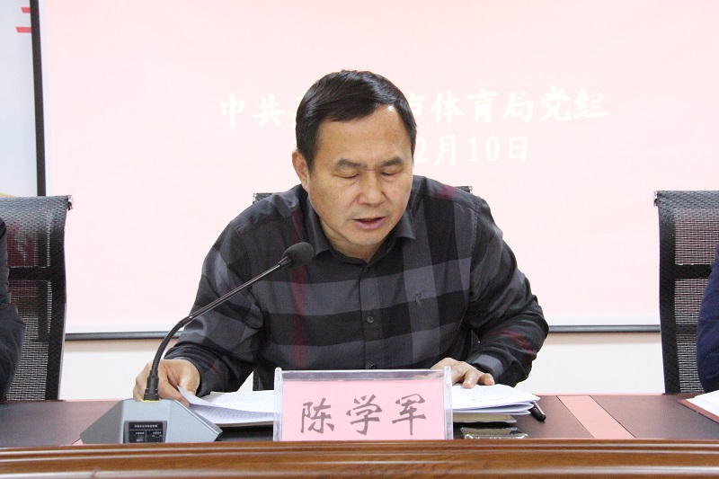 12月10日上午,市体育局召开专题会议,传达学习市第十二次党代会精神。党组书记、局长陈学军同志主持会议领学并就贯彻落实党代会精神作出安排部署,全局党员干部职工、市体校副科级以上干部参加会议。