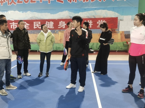 12月4日,嘉峪关市体育局举办2024年全民健身大讲堂(第六期)暨全民健身新项目推广(匹克球)培训班。本次培训班邀请嘉峪关市钢铁职业技术学校教师、2024年甘肃省首届匹克球公开赛男单冠军王兴涛授课,共有羽毛球协会、网球协会、各学校教师60余人参加。