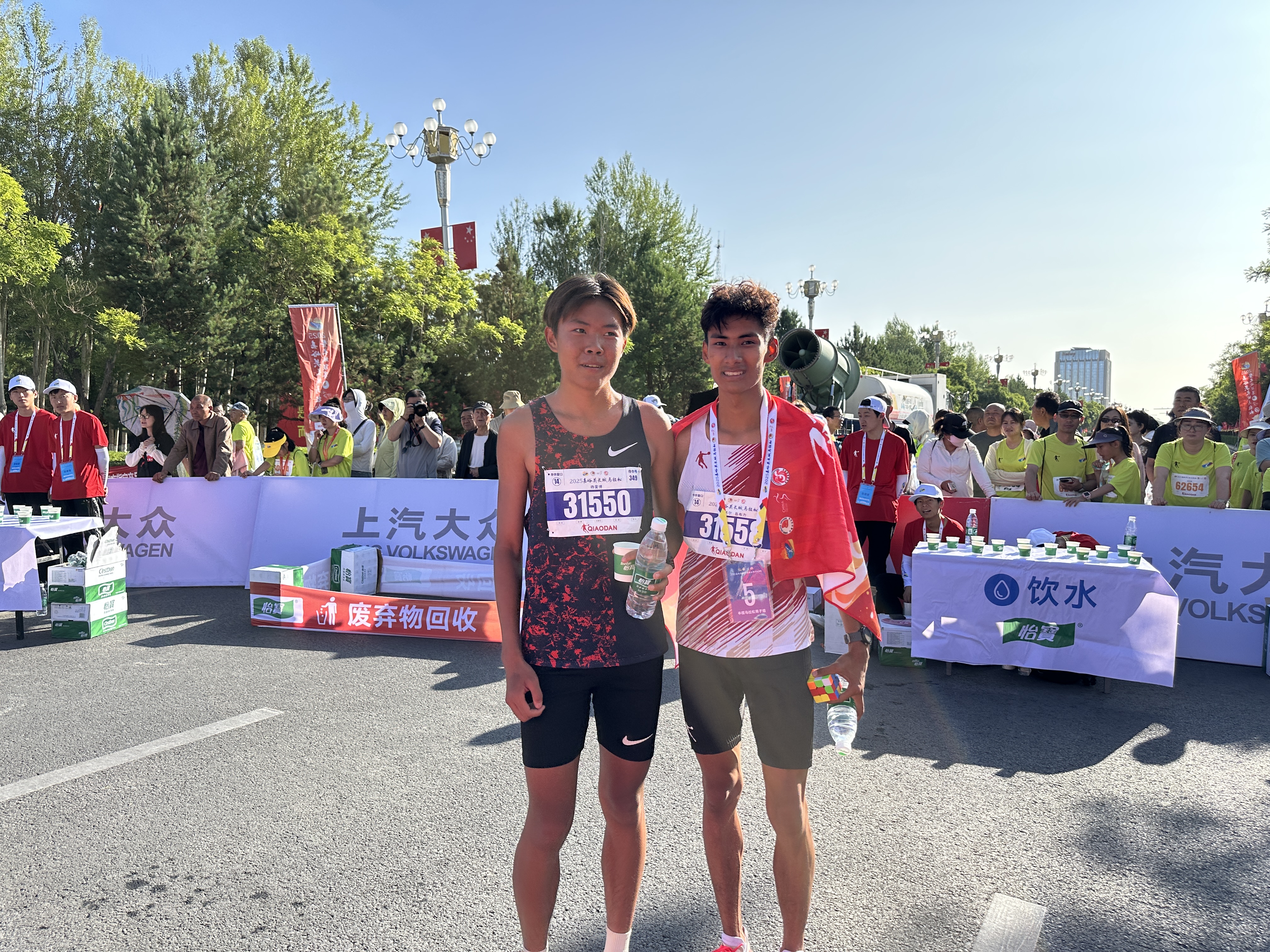 在半程马拉松项目中,嘉峪关市体校小将阿卜杜拉·阿布力提普和赛尔达尔·吾布力表现出众。阿卜杜拉·阿布力提普以01:10:36的成绩荣获男子组亚军,赛尔达尔·吾布力以01:14:03的成绩夺得男子组第五名。发令枪响后,阿卜杜拉凭借出色的爆发力在前半程占据领先,后半程又依靠顽强的耐力保持优势;赛尔达尔则采用匀速策略,稳步前进,最终两人均突破个人最佳成绩。他们如疾风般驰骋赛道,用“00后”的冲劲在古城中留下了青春的足迹,现场观众多次为他们欢呼喝彩。
