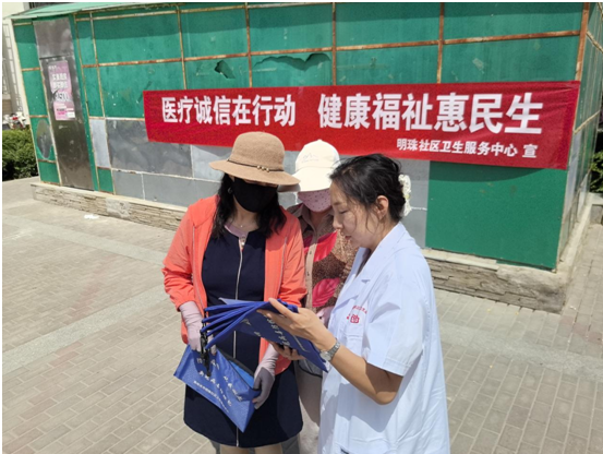 诚信如磐,是医疗事业发展的生命线;仁心似灯,照亮医患之间的信任之路。近日,嘉峪关市明珠社区卫生服务中心以“医疗诚信在行动,健康福祉惠民生”为主题,在辖区内润泽园小区广场开展了一场别开生面的诚信医疗宣传活动。这场以民为本的健康宣传,通过多维度的惠民举措,不仅为辖区居民送上健康关怀,更在医患之间架起一座心心相印的桥梁。