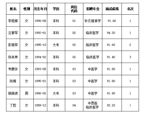 一、2023年卫生健康系统基层医疗机构招聘聘用制执业(助理)医师体检入围人员名单