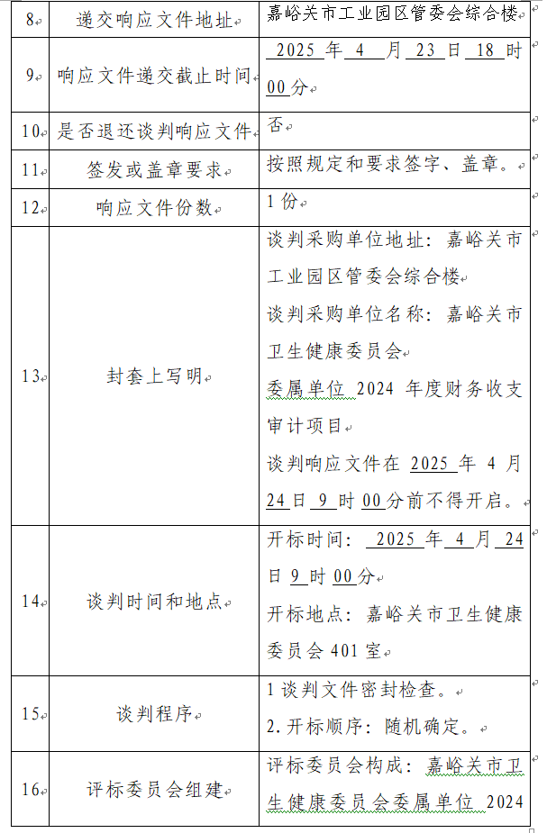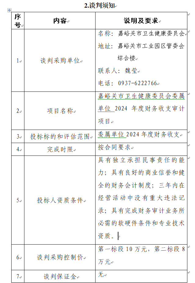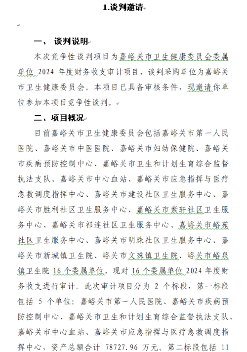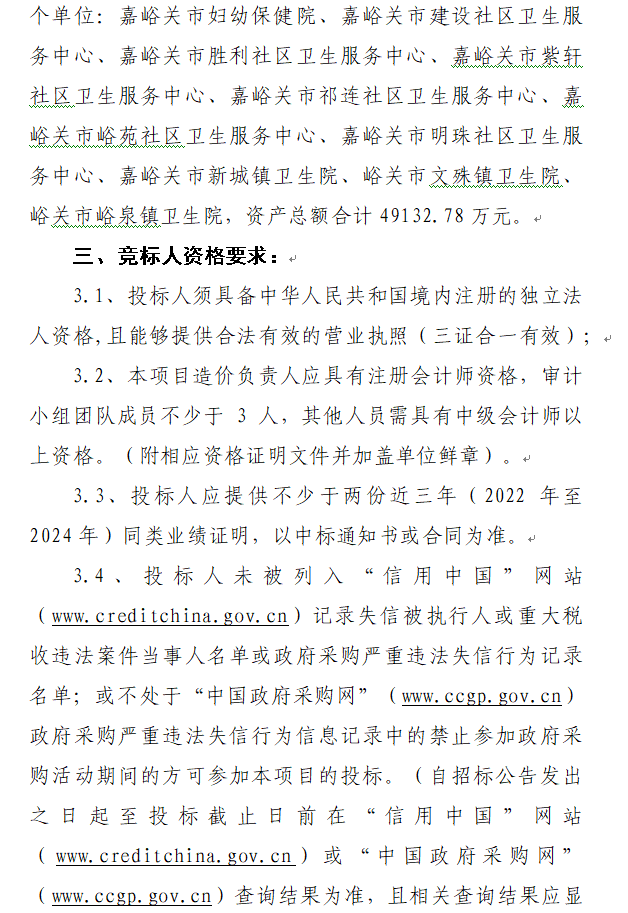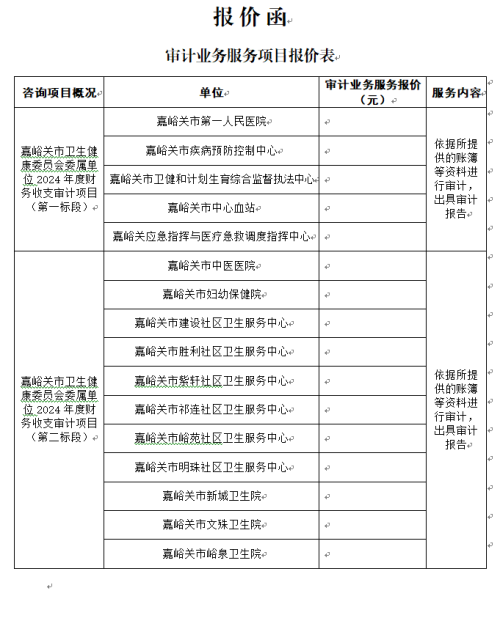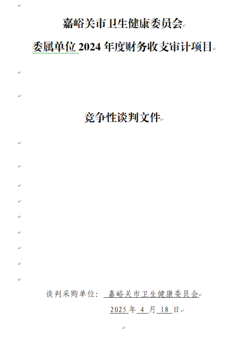 嘉峪关市卫生健康委员会委属单位2024年度财务收支审计项目