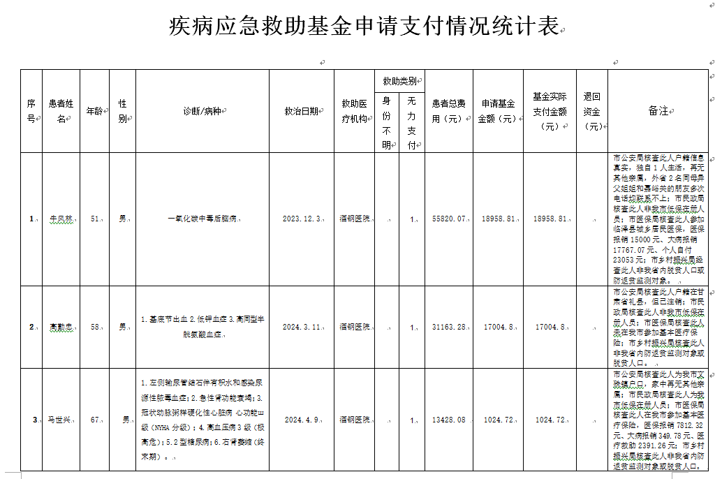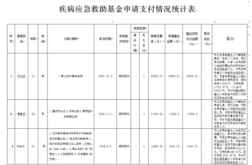 2025年4月份疾病应急救助基金申报支付情况公示