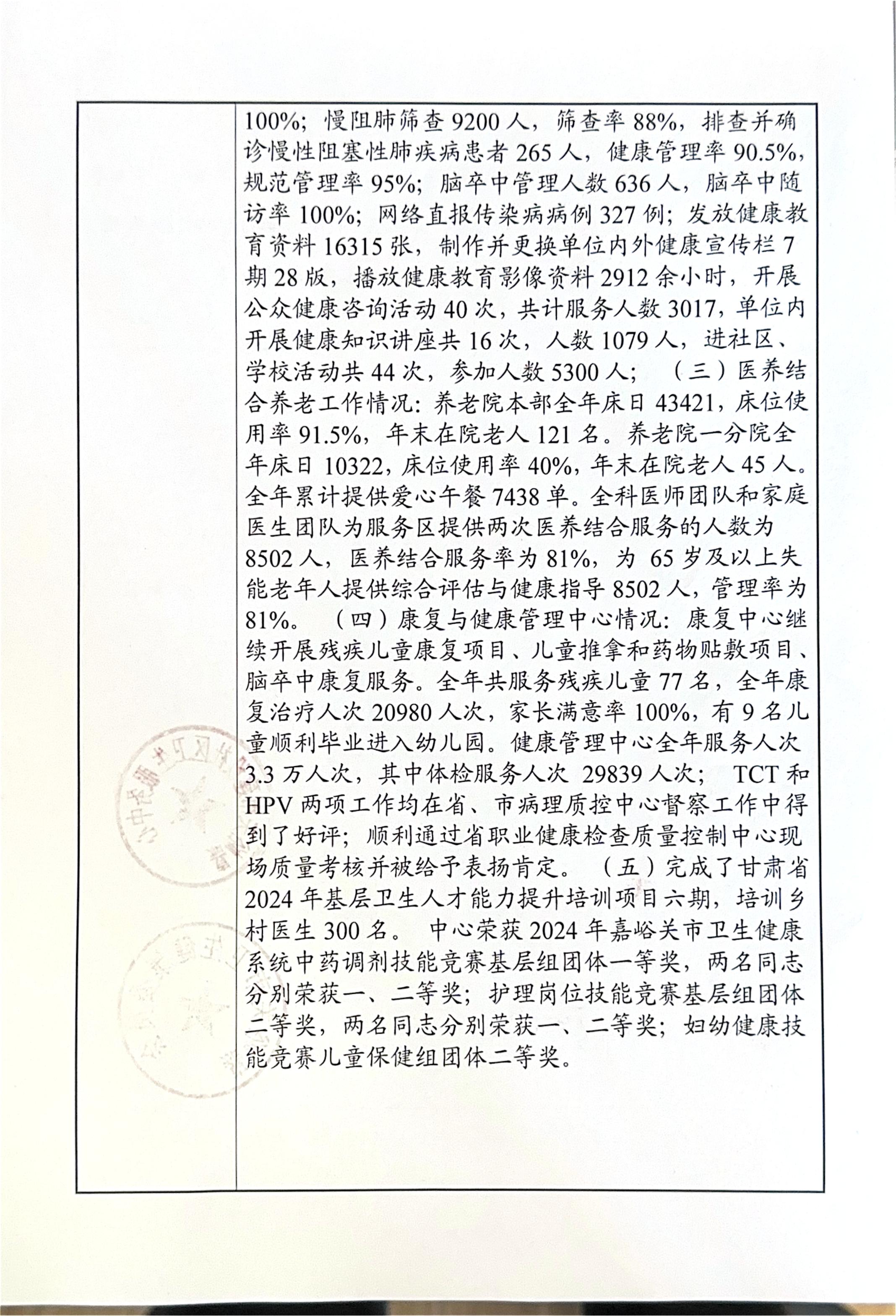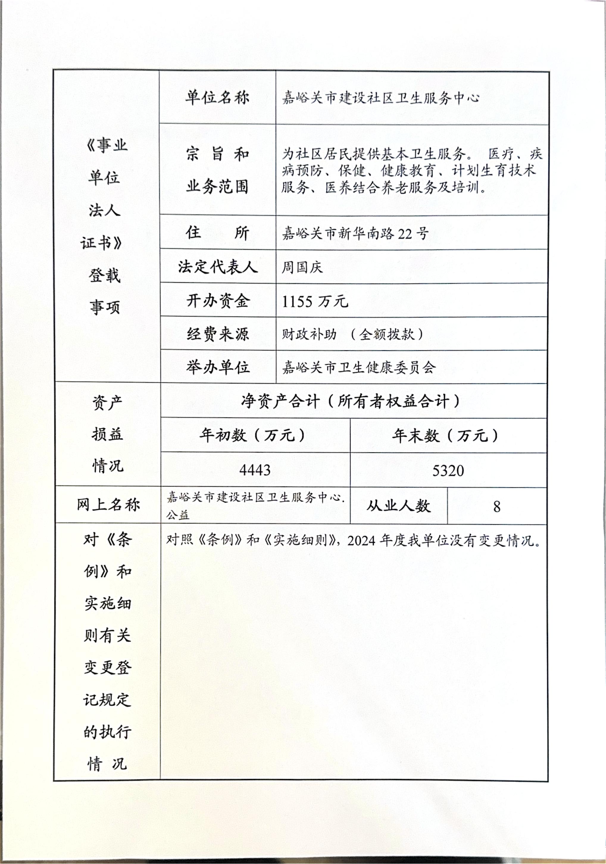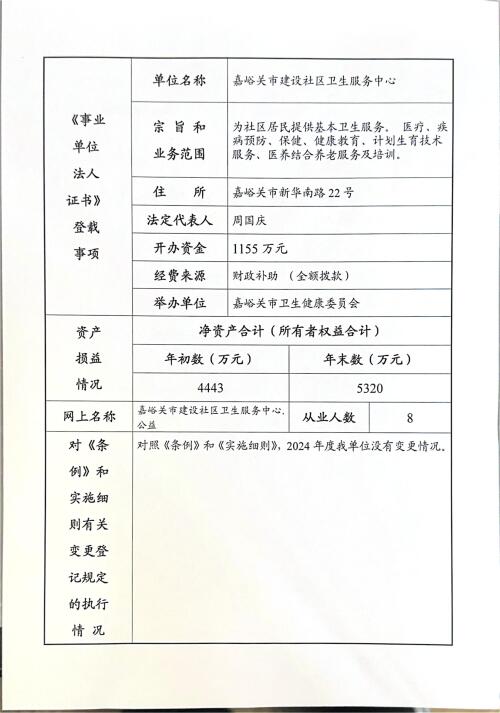 2024年度嘉峪关市建设社区卫生服务中心法人年度报告书