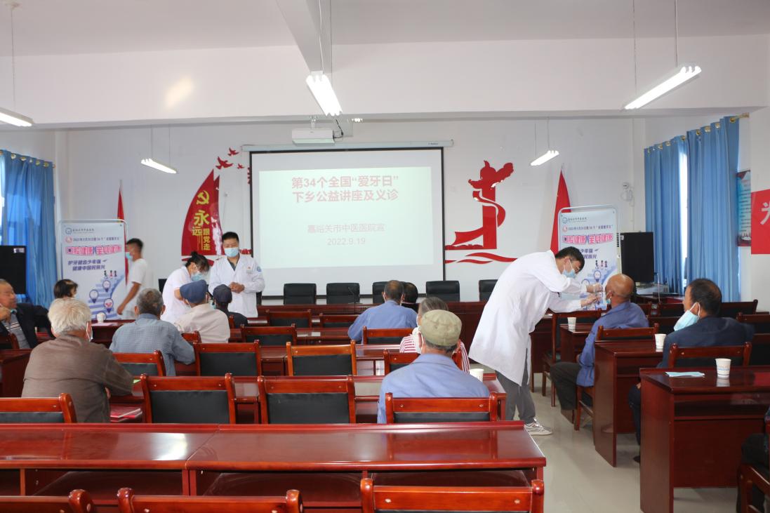 2022年9月20日是第34个“全国爱牙日”。为提高群众口腔健康意识,科普口腔保健知识,9月19日下午,嘉峪关市中医医院口腔医学中心主任雷双喜一行5人在嘉峪关新城乡峪泉镇举办健康讲座和义诊活动。