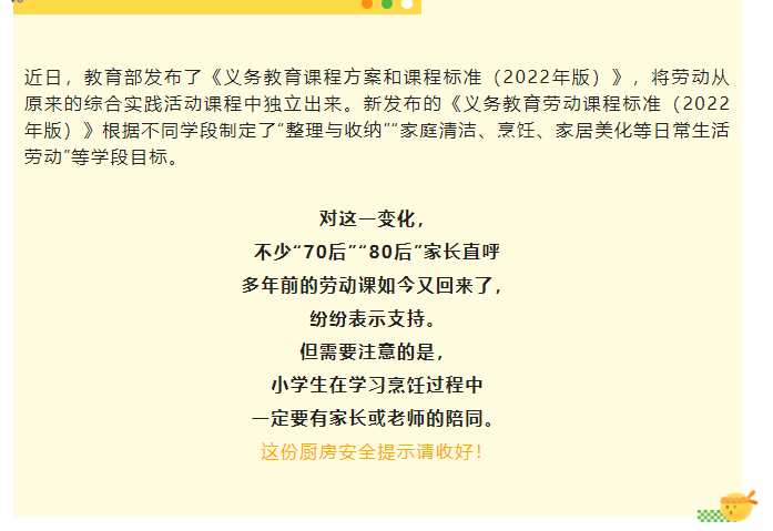 读图丨小学生进厨房劳动?这份安全提示请收好!