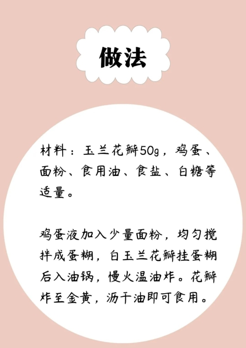 吃花的历史在中国已有上千年,古人以花入馔,格调清雅,如屈原《离骚》中曾提到:“饮木兰之坠露兮,夕餐秋菊之落英。”俗语云:“春吃鲜花夏吃果,秋食野菌冬喝汤。”但食用春花时要注意以下几点:第一,要选择常见的可食用鲜花,不食用不认识的花,不食用有毒的花。第二,过敏体质人群慎重食用,如发生过敏现象,请及时到医院就诊。第三,要采用安全的方法烹饪鲜花。今天给大家介绍几种春夏时节常见的花朵该如何吃。