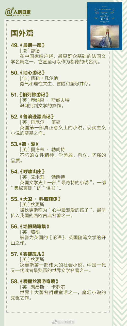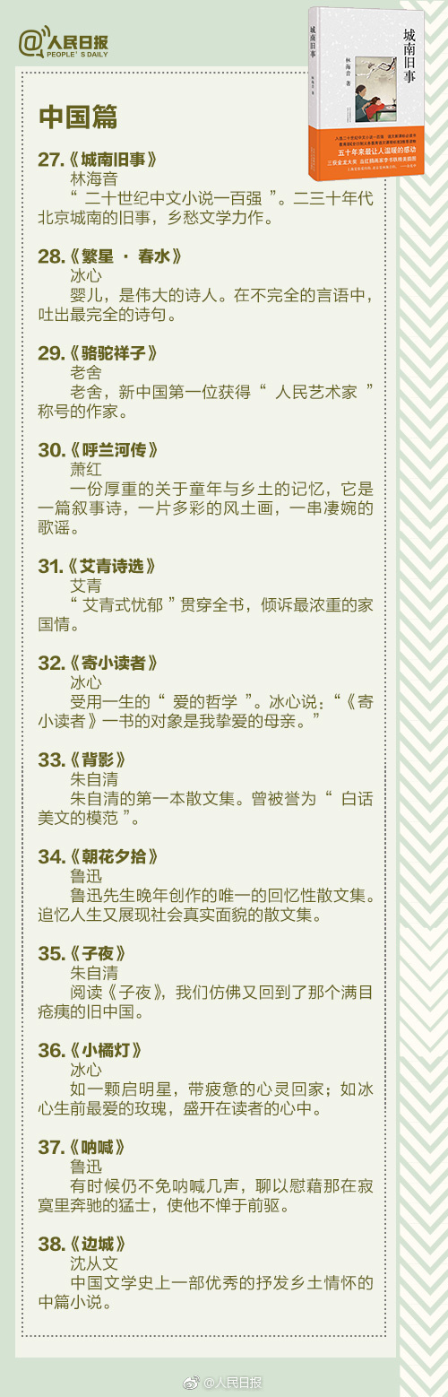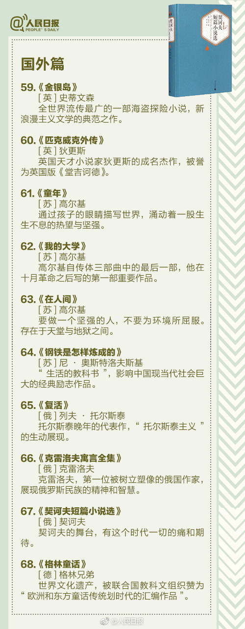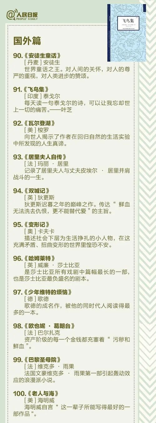 人民日报推荐100部经典书籍,涉及古今中外的名著。名著的智慧能穿越时空,无论任何时代,都能放射它的光芒。如果你不知道读什么书,不妨先从这些经典名著读起。
