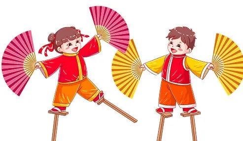 踩高跷,是民间盛行的一种群众性技艺表演。高跷本属中国古代百戏之一种,早在春秋时已经出现。划旱船,民间传说是为了纪念治水有功的大禹的。旱船不是真船,多用两片薄板,锯成船形,以竹木扎成,再蒙以彩布,套系在姑娘的腰间,如同坐于船中一样,手里拿着桨,做划行的姿势,一面跑,一面唱些地方小调,边歌边舞,这就是划旱船。