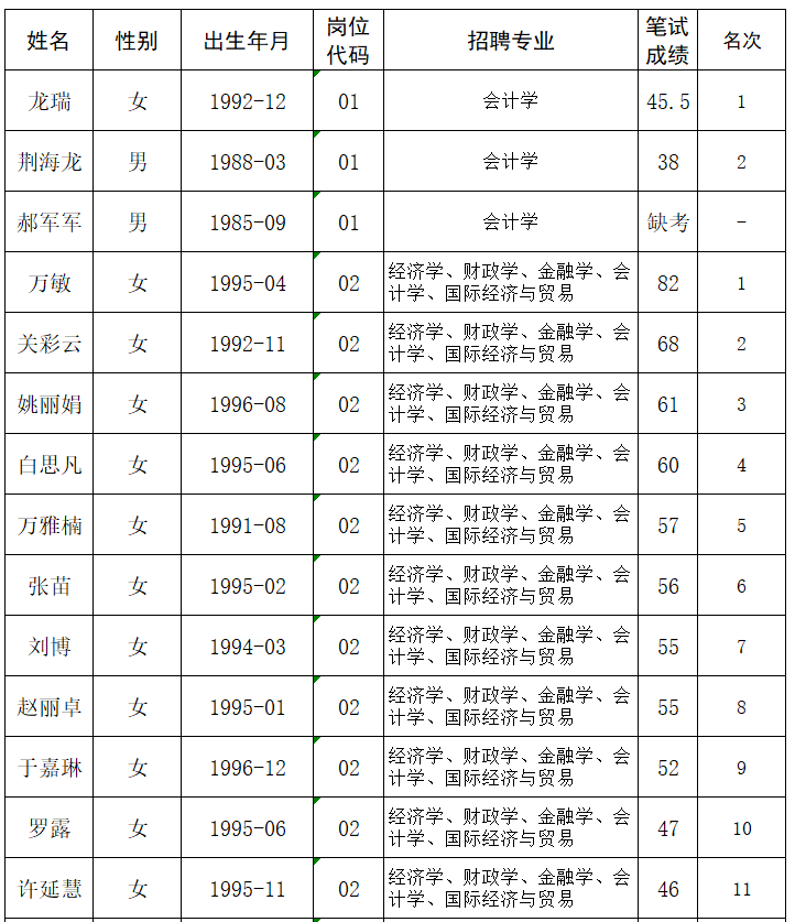 嘉峪关市卫生健康系统公开招聘财务人员笔试已经结束,现将笔试成绩公布如下。