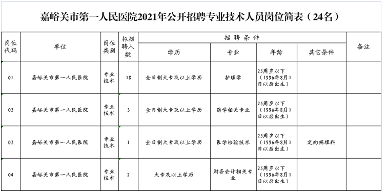 嘉峪关市第一人民医院2021年公开招聘专业技术人员公告