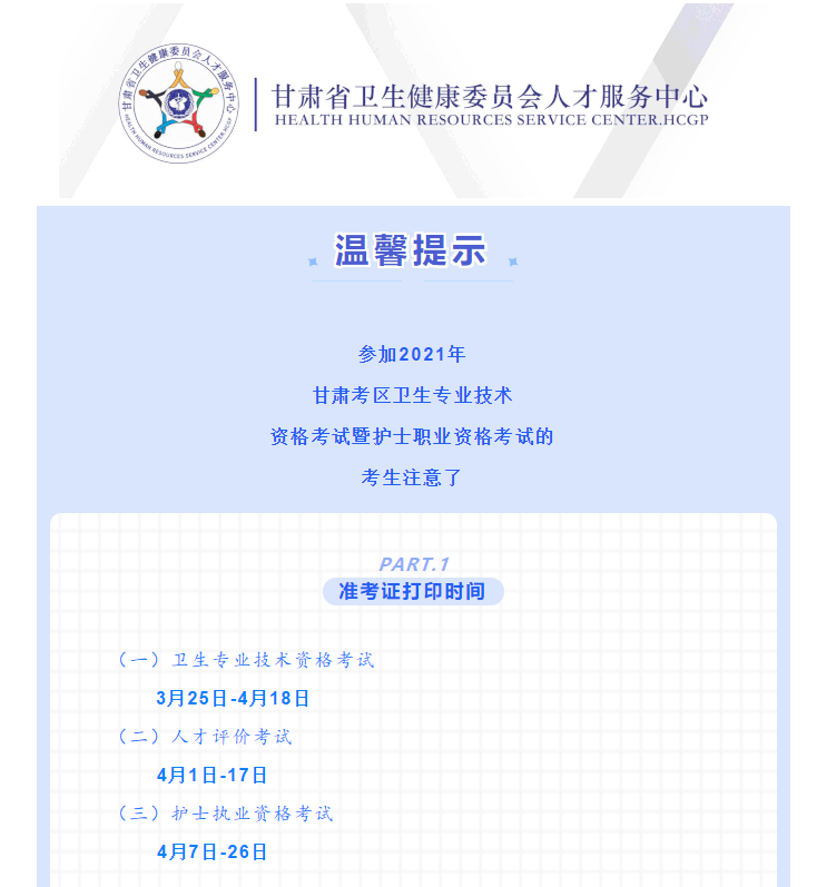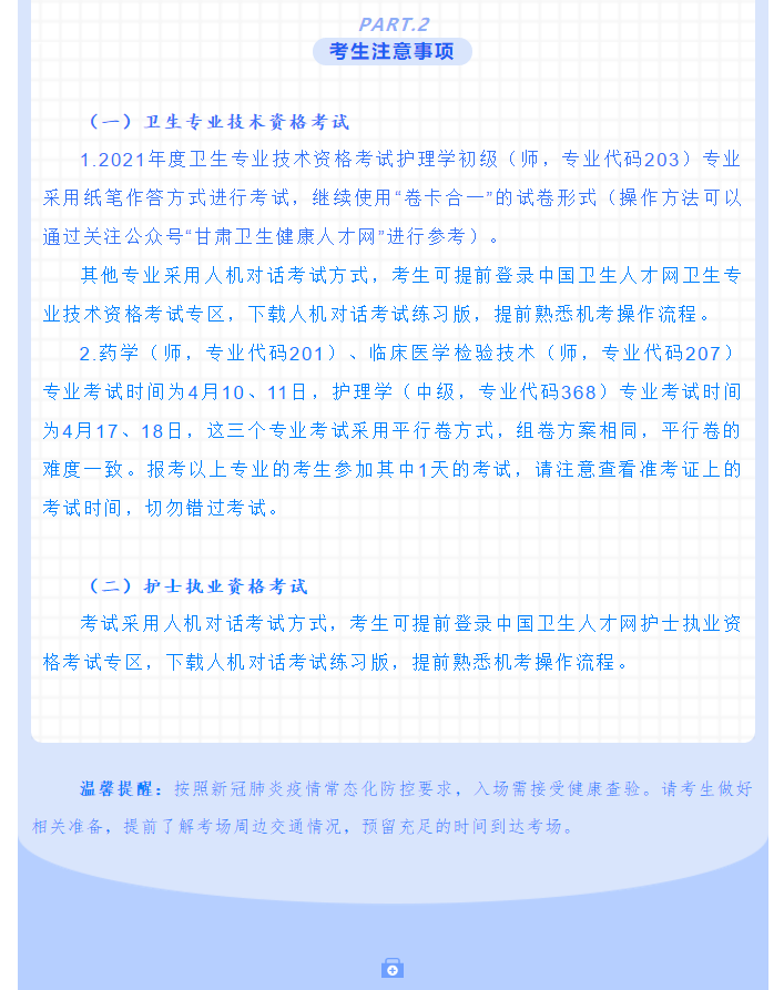 2021年甘肃考区卫生专业技术资格考试暨护士执业资格考试考生须知