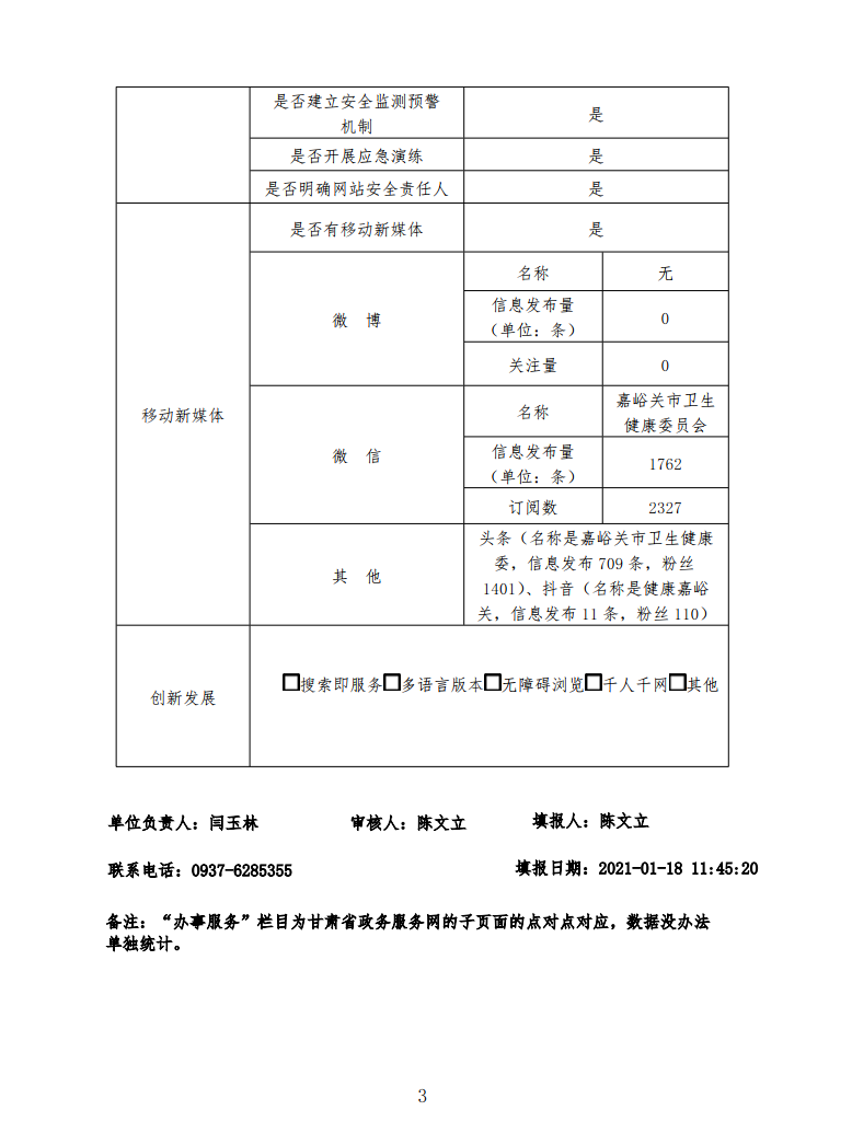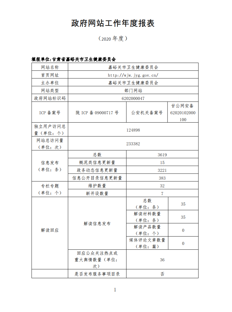 嘉峪关市卫生健康委2020年网站工作年度报表