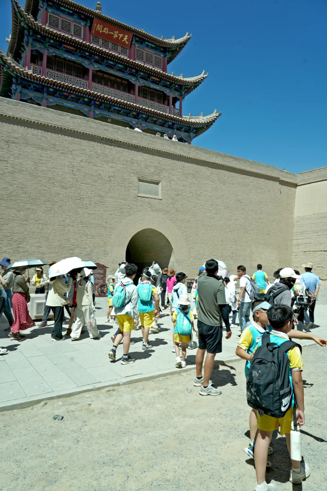 7月24日,湖南电视台潇湘电影频道的大型青少年研学美育综艺节目《跟着课本去旅行》栏目组来到嘉峪关关城,开展专题拍摄活动。