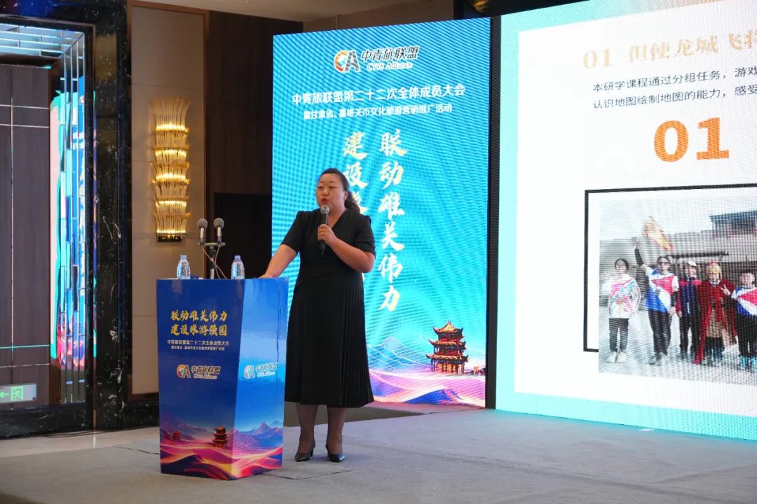 聚焦活动现场,嘉峪关市文旅局局长赵淑敏亲自登台,以满腔热情和独特视角,在全体成员大会上展开了一场精彩的文旅推介,诚邀四海宾朋共赏这份跨越千年的壮丽与辉煌。