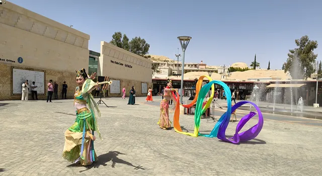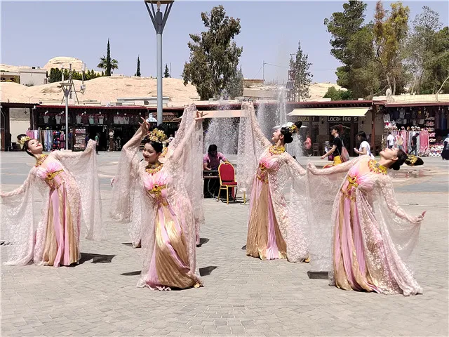 在佩特拉期间,甘肃文旅代表团应邀在古城中心广场举行甘肃文艺演出,美轮美奂的反弹琵琶舞和长绸舞尽显柔美灵动,二胡与琵琶奏响《乐动敦煌·月下少年》,向现场的约旦民众和世界各地游客展示了甘肃舞蹈和中国传统器乐。演出现场人潮涌动,观众掌声雷动,高呼“比占乃恩”“嘿力务”(意为真棒),热情地为中国演员们欢呼喝彩。