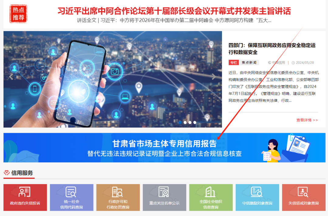 根据甘肃省营商环境建设局《关于印发以专用信用报告替代无违法违规记录证明暨企业上市合法合规信息核查实施方案的通知》(甘营商〔2024〕12号)及市发改委《关于加快落实<以专用信用报告替代无违法违规记录暨上市企业合法合规信息核查实施方案>的通知》要求,将在文化旅游领域开展以专用信用报告替代无违法违规记录证明暨企业上市合法合规信息应用,为进一步优化营商环境,方便市场主体下载专用信用报告,文旅市场主体按照流程(附件)下载专用信用报告,确保以专用信用报告替代无违法违规记录证明暨企业上市合法合规信息核查工作顺利推进。