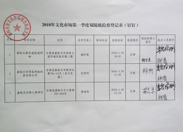 2018年文化市场一季度双随机情况