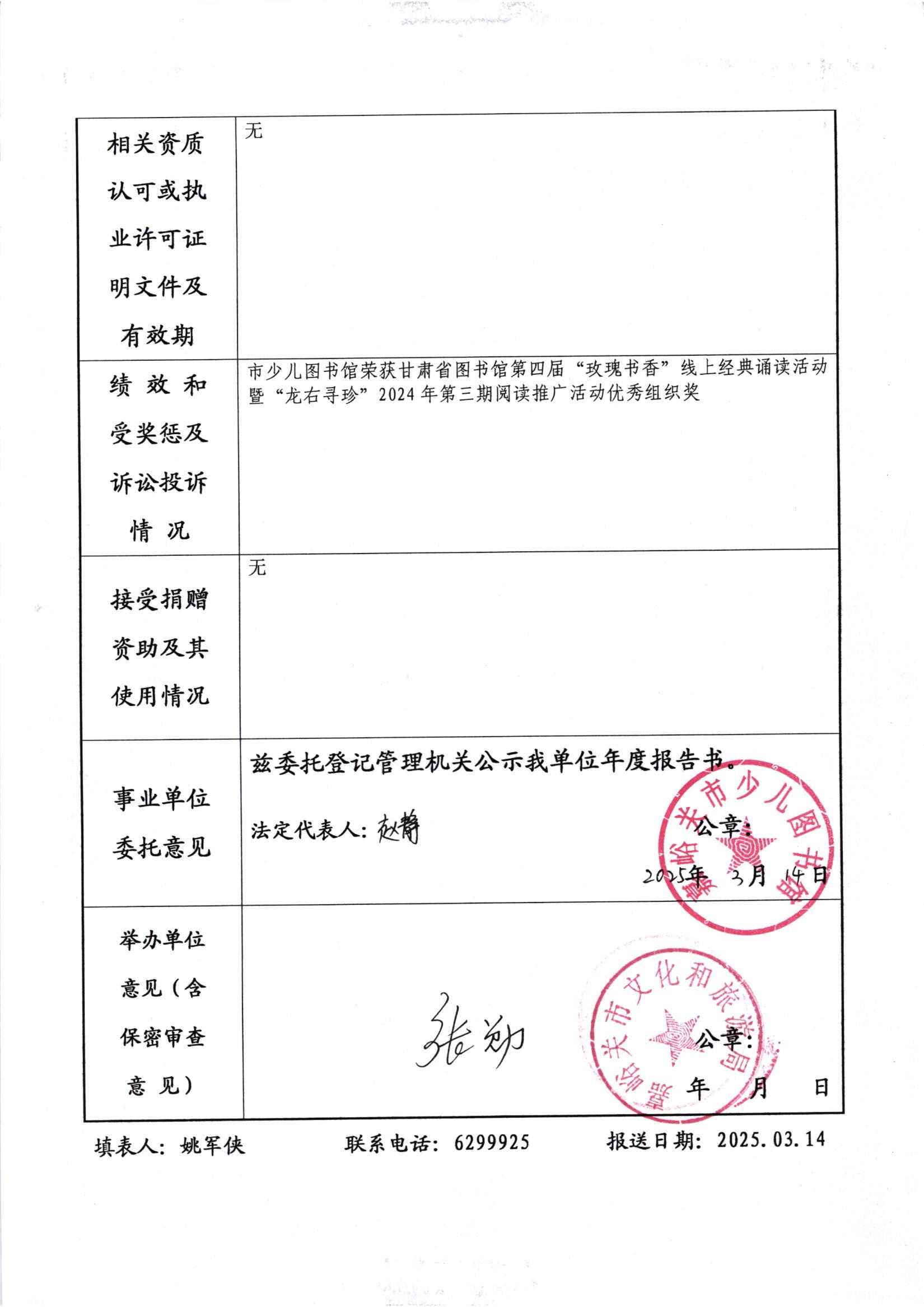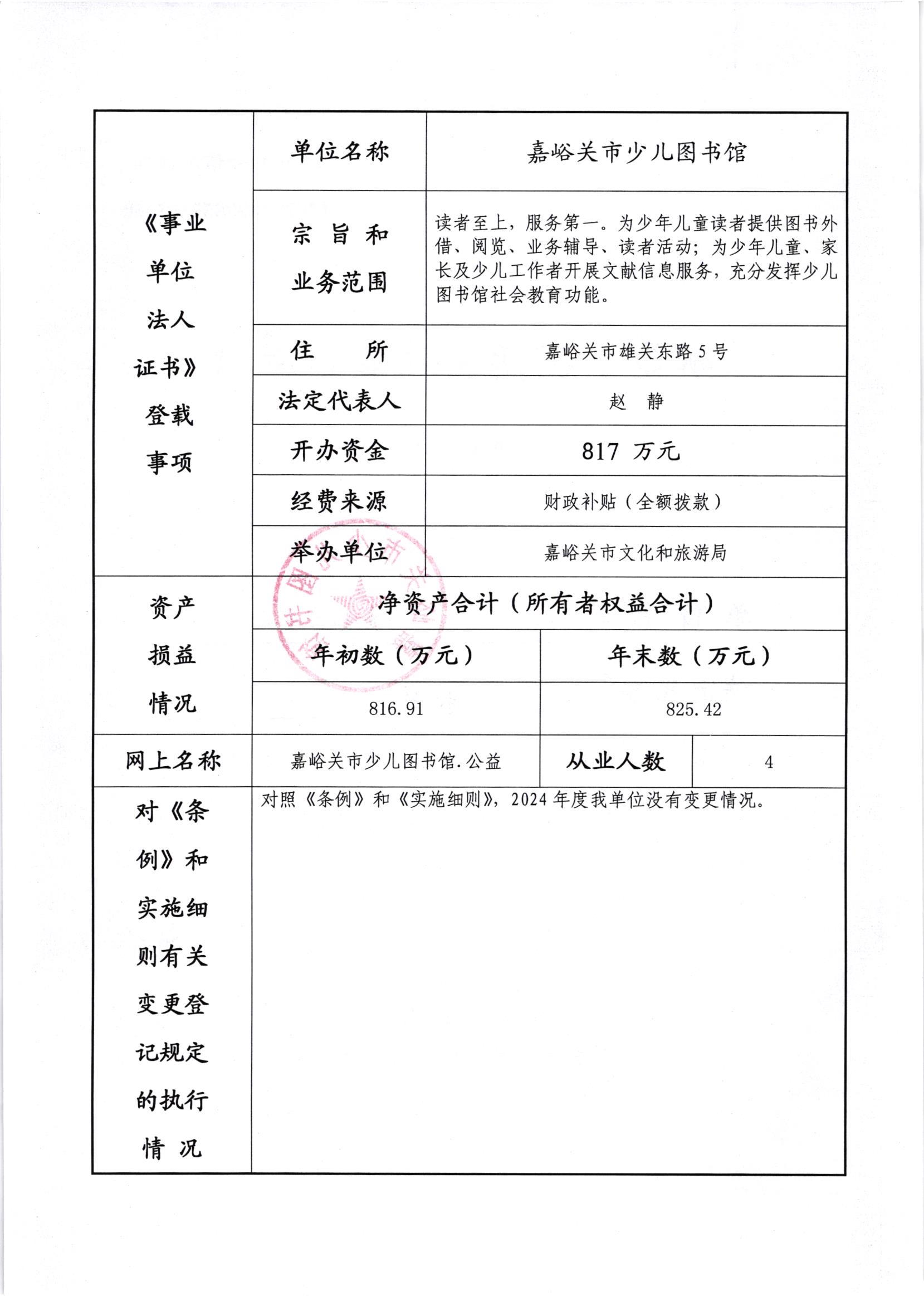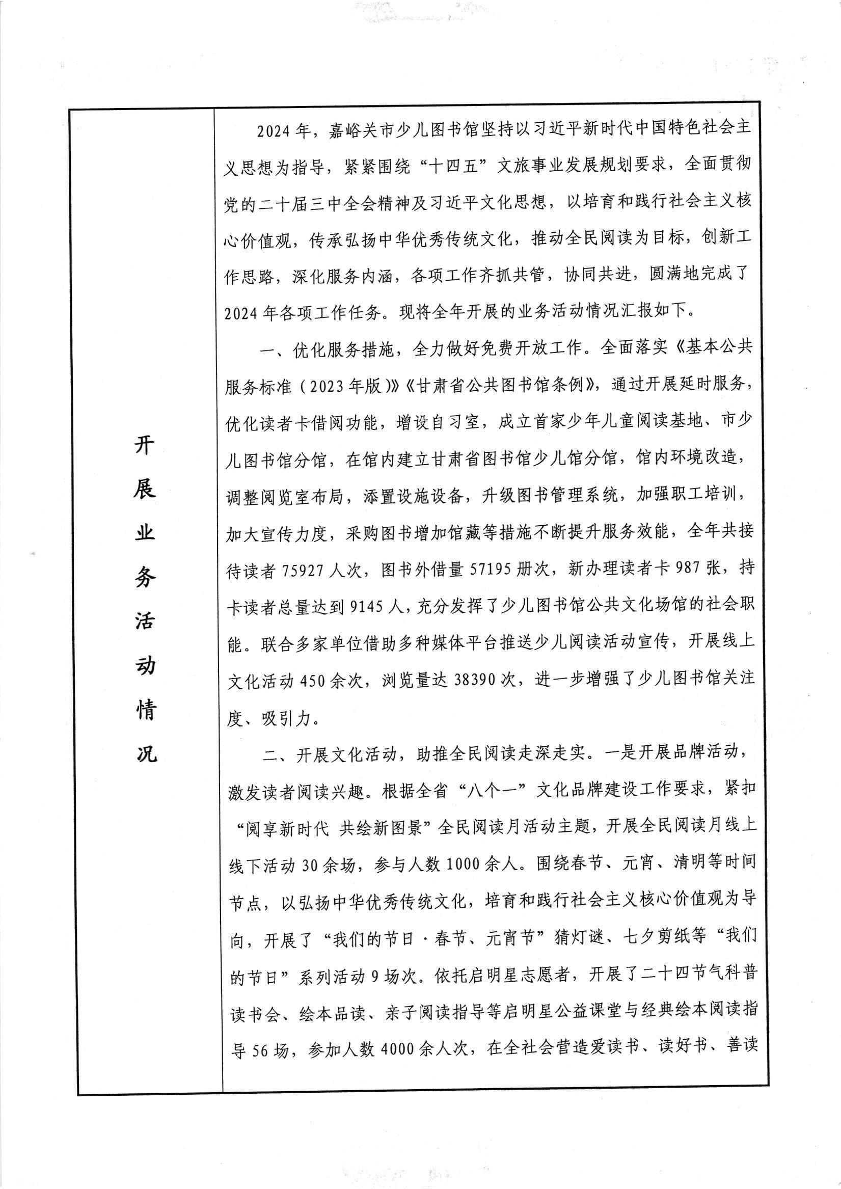 事业单位法人年度报告书(嘉峪关市少儿图书馆)