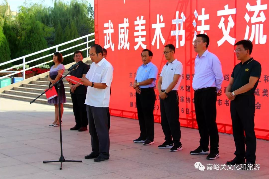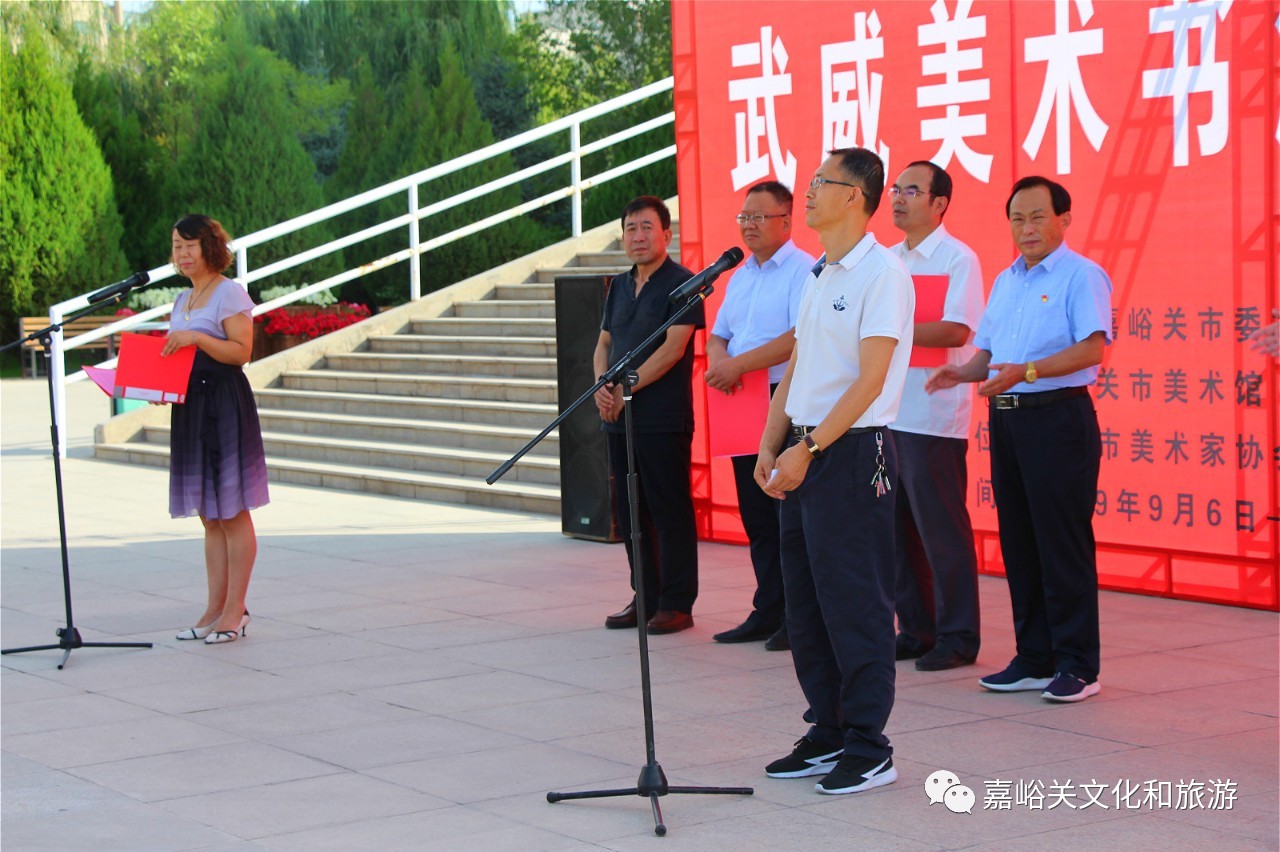城市武威美术书法交流展在嘉峪关城市博物馆开展。中共嘉峪关市委宣传部副部长刘鸿博、嘉峪关市文学艺术届联合会主席徐树喜、嘉峪关丝路(长城)文化研究院院长陈新长、嘉峪关市文化和旅游局副局长李进贤、武威市文体广电和旅游局二级调研员魏辉、中国书法家协会武威市书画院院长齐泽山、武威市美术家协会主席武威市书画院创研部主任黄胜元出席开幕式。