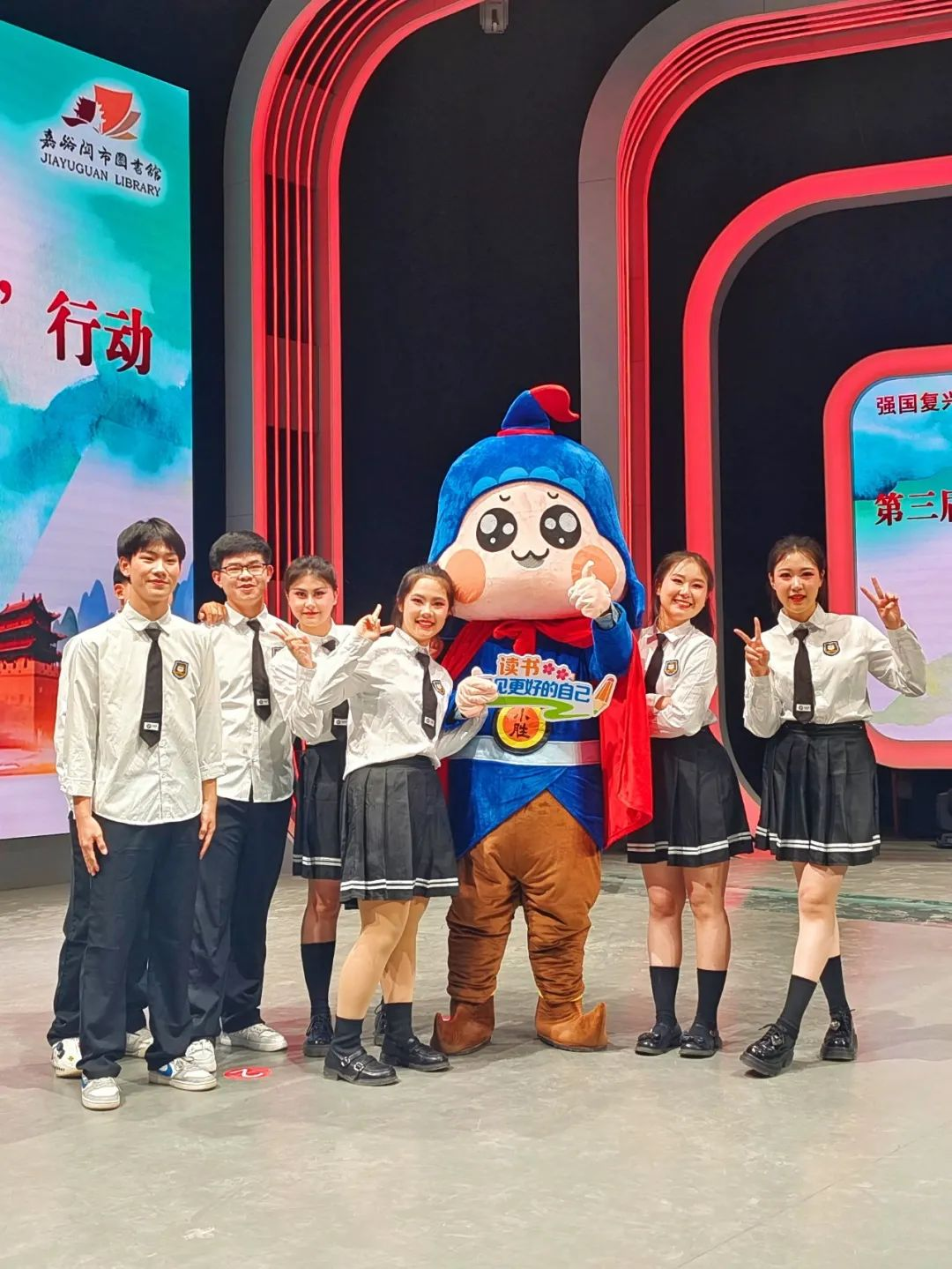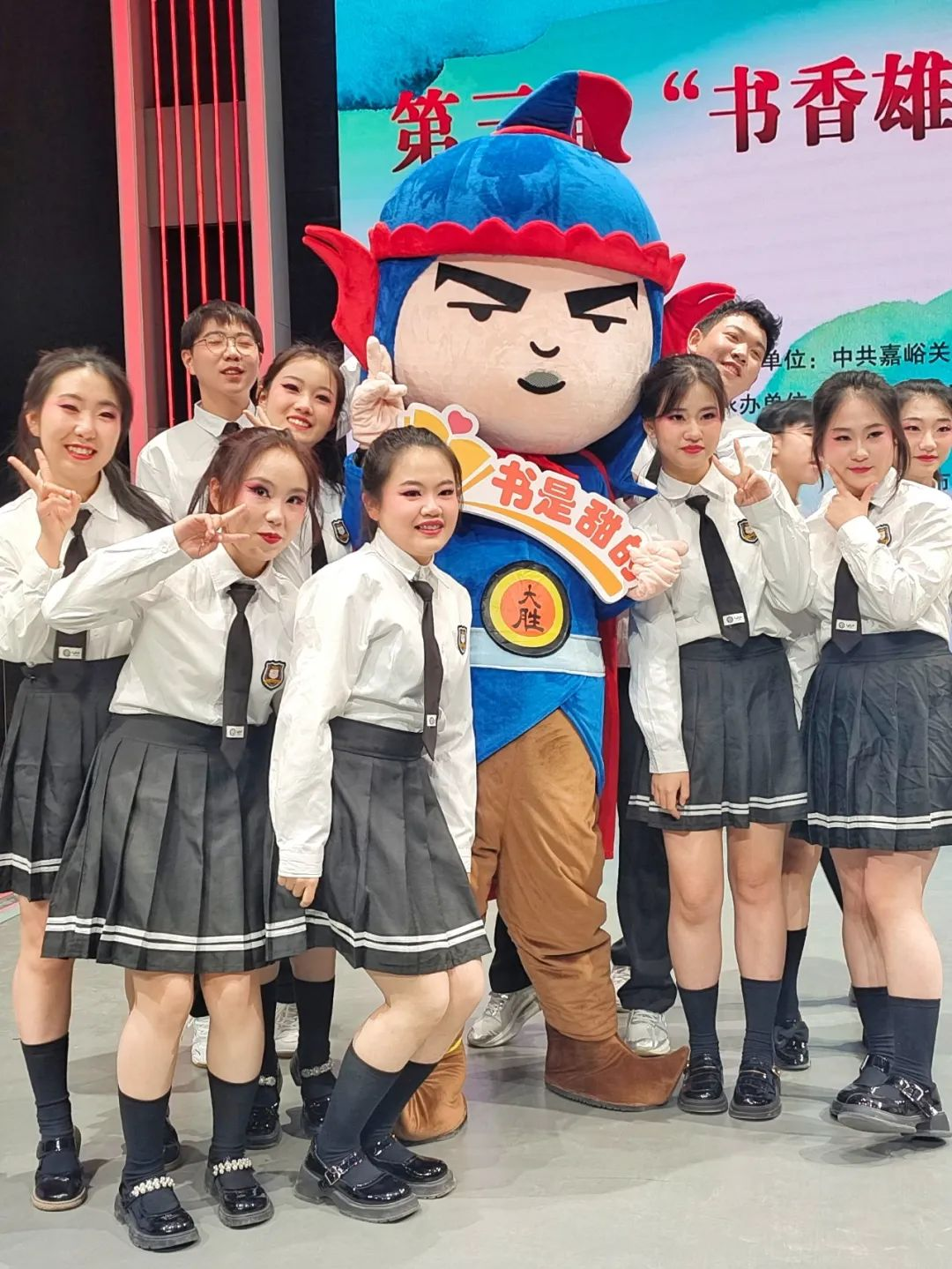 活动现场,两位神秘人物与大家完美互动——那就是嘉图“冯”考必胜文创人偶“冯大胜”和“冯小胜”啦!一个威武不苟言笑,一个卖萌爱吃烤肉,绝对是读书节“小网红”呢。