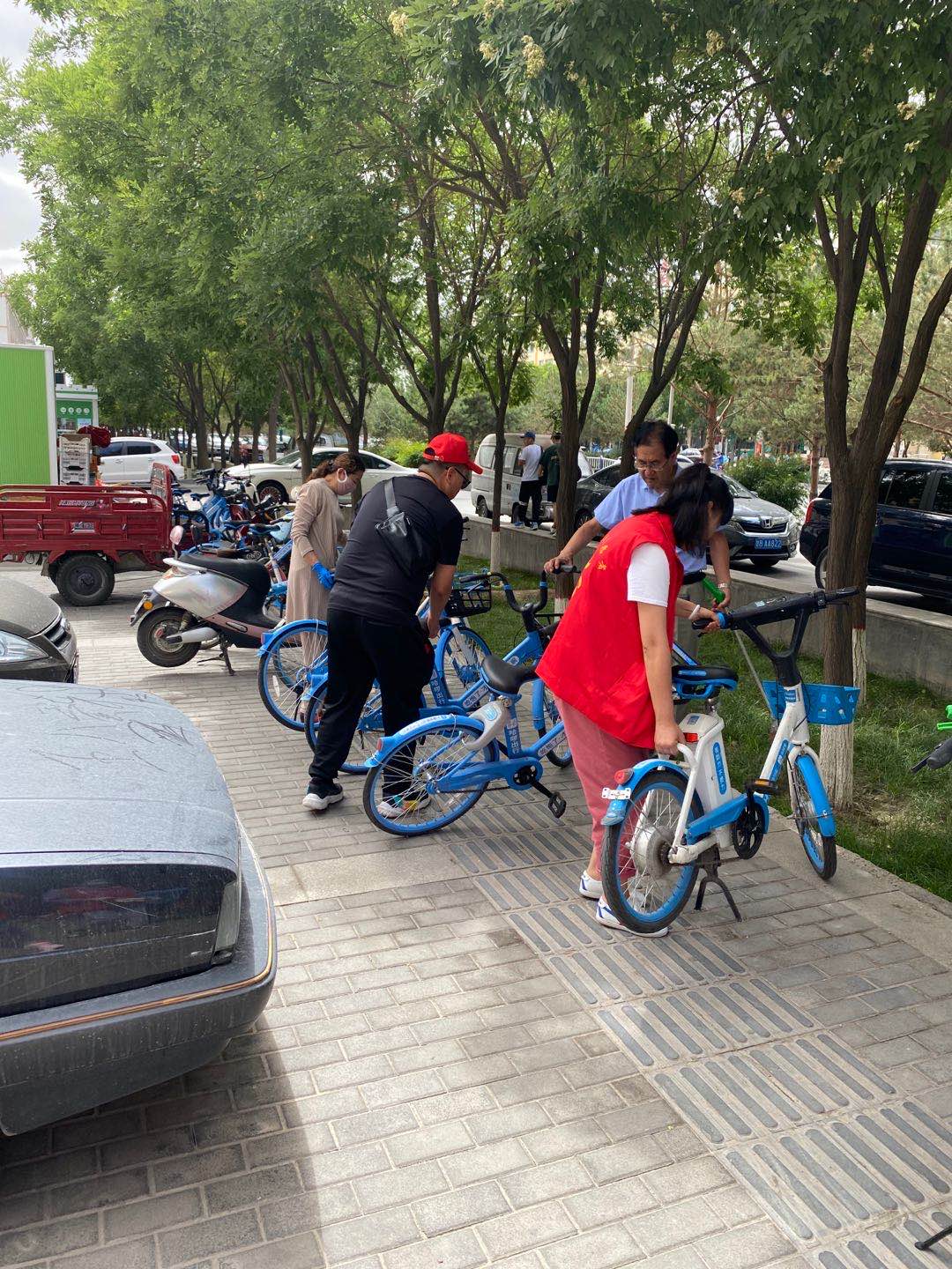 7月31日整理摆放路边非机动车