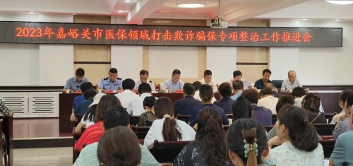 为深入贯彻落实党中央、国务院关于医疗保障工作的决策部署及国家医保局医保基金监管安全规范年行动,持续强化医保基金监管,整治和规范医疗保障秩序,加大对欺诈骗保行为的打击力度,确保医保基金安全高效、合理规范使用。根据国家医保局、最高人民检察院、公安部、财政部、国家卫健委《关于开展医保领域打击欺诈骗保专项整治工作的通知》和甘肃省医保局、省人民检察院、省公安厅、省财政厅、省卫健委《关于开展2023年甘肃省医保领域打击欺诈骗保专项整治工作的通知》要求以及市医保局、市人民检察院、市公安局、市财政局、市卫健委《关于印发2023年嘉峪关市医保领域打击欺诈骗保专项整治工作实施方案的通知》精神,2023年7月26日,嘉峪关市医保局组织召开2023年全市医保领域打击欺诈骗保专项整治工作推进会。会议由市医保局分管领导主持,市人民检察院、市公安局、市财政局、市卫健委、市纪委监委派驻市卫健委纪检监察组分管领导以及甘肃矿区医保局主要领导出席会议并讲话,参加会议的有全市定点医药机构负责人120余人