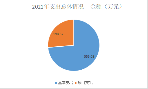 本部门2021年度支出总计750.6万元。其中:基本支出555.08万元,占73.95%; 项目支出195.52万元,占26.05%。