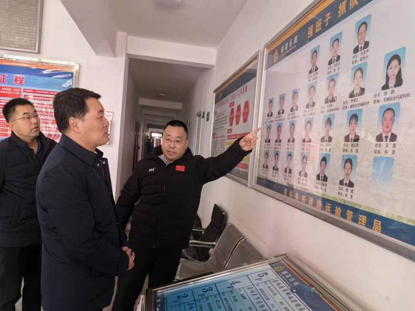 2月28日下午,省安全生产驻点包抓“百日行动”第二督导组组长、省交通运输厅副厅长李树峰一行对嘉峪关市道路运输工作进行了调研指导。