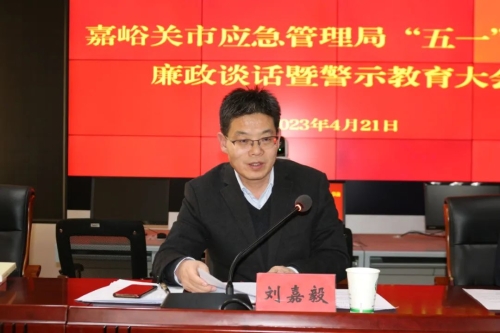 为深入学习贯彻习近平总书记关于全面从严治党的重要论述,纵深推进党风廉政建设和强化节日期间作风纪律建设,4月21日下午,嘉峪关市应急管理局组织召开“五一”节前廉政谈话暨警示教育大会,会议由局党委书记、局长刘嘉毅同志主持,市纪委监委派驻市公安局纪检监察组组长赵陆峰、局机关及三镇应急所全体干部职工参加会议。