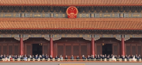 9月3日,纪念中国人民抗日战争暨世界反法西斯战争胜利80周年大会在北京天安门广场隆重举行。大会开始前,中共中央总书记、国家主席、中央军委主席习近平和夫人彭丽媛在端门外广场迎接出席大会的外方代表团团长及其配偶,并同他们合影留念。