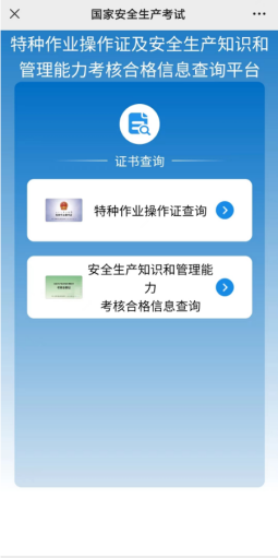 理论考试及实操考试均合格后可登录应急管理部特种作业证书查询官网(https://cx.mem.gov.cn/)或者官方微信公众号“国家安全生产考试”公众号,经注册后,查询个人特种作业证书。