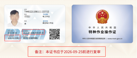 方式一:通过登录应急管理部特种作业证书查询官网(https://cx.mem.gov.cn/)查看复审时间。