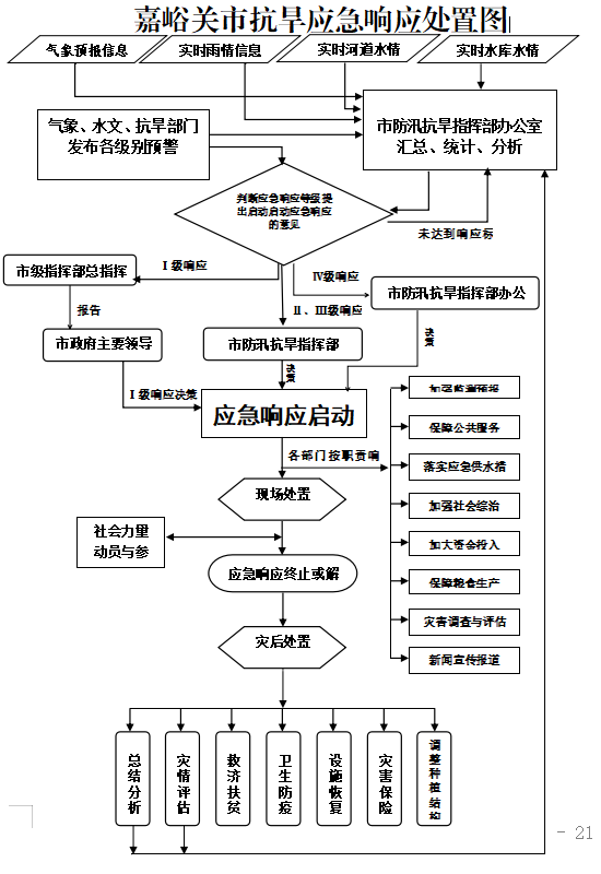Ⅱ、Ⅲ级预警发布程序。市防汛抗旱指挥部办公室针对旱情组织有关部门和专家对全市旱情进行综合评估,向市防汛抗旱指挥部呈报评估意见。市防汛抗旱指挥部会商形成预警决定并发布,同时报市政府备案。