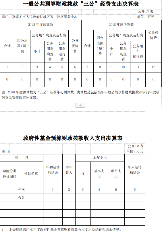 五一社区服务中心2018年度 “三公”经费支出共计0万元,较年初预算数增加0万元,社区无此项支出,与2017年无变化。