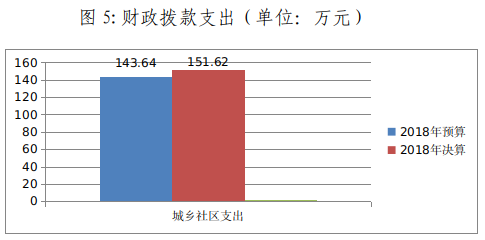 五一社区服务中心2018年度财政拨款支出主要用于以下方面:城乡社区支出151.62万元,占100%,较年初预算数增加7.98万元,主要原因是在编人员调入、聘用人员工资调增、社会保障缴费基数调整。