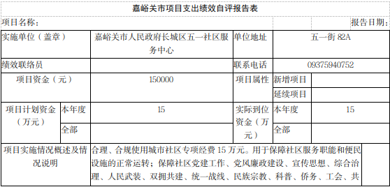 根据《嘉峪关市财政预算绩效管理实施意见(试行)》及中共嘉峪关市委文件嘉发[2014] 87号中共嘉峪关市委嘉峪关市人民政府关于加强和改进各区及城市社区工作的意见,合理、合规使用城市社区专项经费15万元。2018年五一社区专项经费支出15万元主要用于辖区内党的建设、社会治安综合治理、城市管理、民生服务、社区建设及市委、市政府交办的专项工作任务所需经费支出,支出用途严格按照专项经费支出相关制度执行。