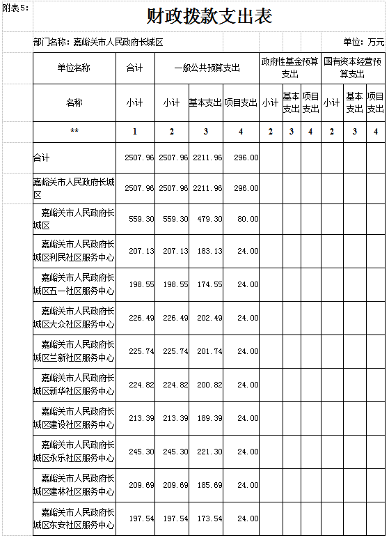 第二部分 嘉峪关市人民政府长城区2019年度部门预算表
