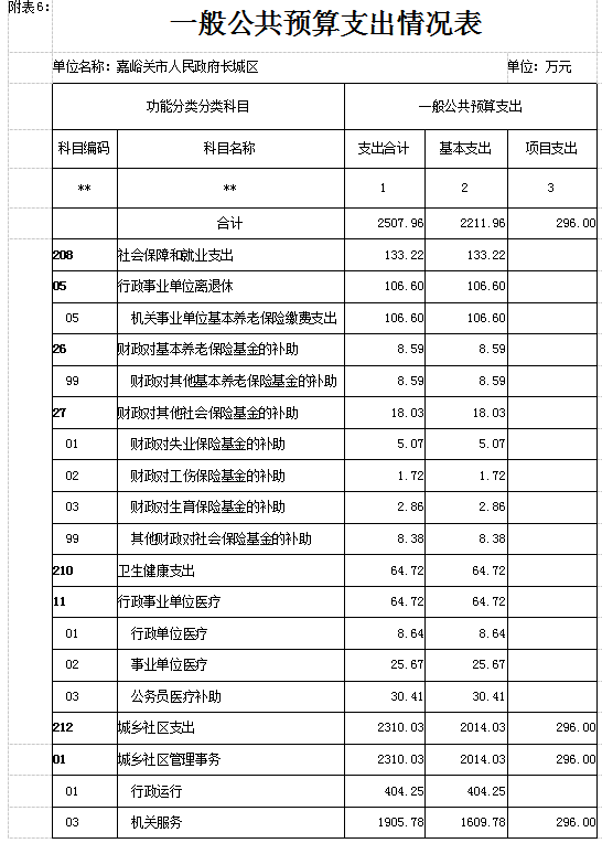 长城区2019年度一般公共预算财政拨款支出2507.96万元,比上年增加194.53万元,增长8.41%。