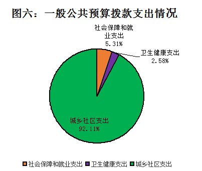 长城区2019年度一般公共预算财政拨款支出2507.96万元,主要用于以下方面:社会保障和就业支出133.22万元 ,占5.31%;卫生健康支出64.72万元,占2.58%;城乡社区支出2310.03万元,占92.11%。